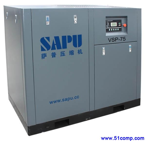 概述:SAPU变频螺杆式空压机特点1、经济的运行成本系统采用0-100%的排气量无级调节。当用气量减小时,排气量跟着减小,电机的电流也同时降低;当不用气时,空压机空车运转,空车过久自动停机;当用气量增加时,恢复重车。节能效果最优。 2、良好的环境适应性 超常的冷却系统设计,适用于高温、潮湿的工作环境;高精密空气过滤系统能够确保气源品质,让设备稳定运转无故障;优良的隔振技术和降噪措施,使萨普螺杆空压机的安装无须专设基础平台,只要留出最小的通风和维护空间,就能安置好您的压缩机。3、高效可靠的原装进口主机 SAPU螺杆转子(主机)德国原装进口,采用第三代非对称齿型为5:6的转子,长径比选择合理,其转子的切线速度仅为30-36m/s,远低于一般空压机60m/s的切线速度,转子之...
