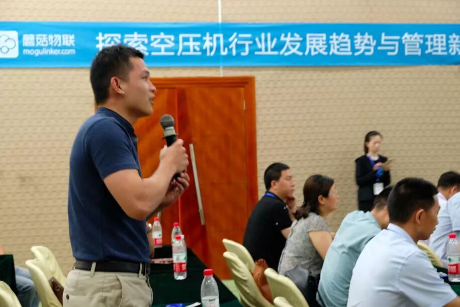 下午16时,沙龙会议如约召开。在会议开始阶段,程红星总经理为大家解读了3大内容:空压机品牌的可持续经营、节能产品的发展趋势、以及团队内驱力的建设。让大家对当下的行业趋势有一个清晰且系统的了解。紧接着,沈国辉总经理又与大家分析了在中国经济进入新常态的时代下,企业如何信息化转型与升级,主要从4个方面来提升效益与品牌美誉度:空压机设备、空压机客户、相应的售后服务、以及企业团队的管理,特别分享了针对行业的物联网管理新工具,获得了各位行业企业家的认可与关注。现场气氛十分活跃,大家积极发表了自己的见解,并与两位主讲人一对一进行了交流与探讨。